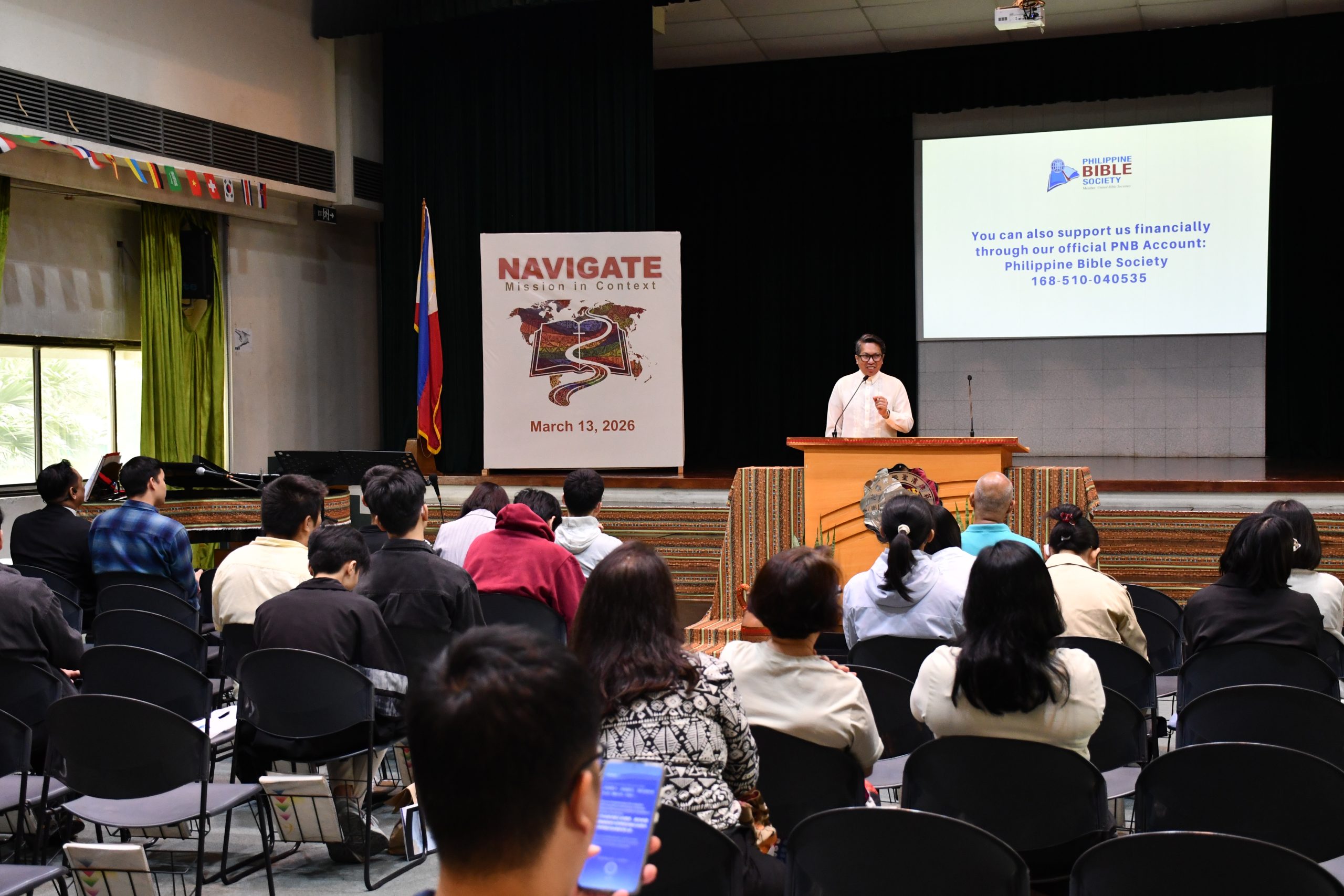 On March 13, 2026, representatives from the Philippine Bible Society, including General Secretary Ms. Laura Valledo, took part in Navigate: Mission in Context—a one-day event organized by the Biblical Seminary of the Philippines to foster a spirit of mission among its students. Several organizations geared towards mission work also set up booths at the venue and introduced their respective ministries.