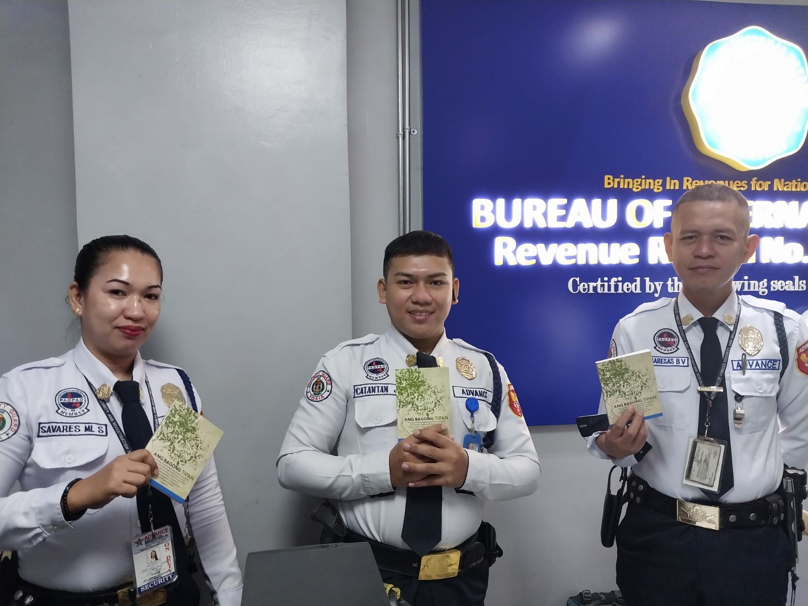 Bible: Pinoy Version. Officials from the BIR office also prayed and then pledged to serve the country faithfully and selflessly, after which they were given copies of
